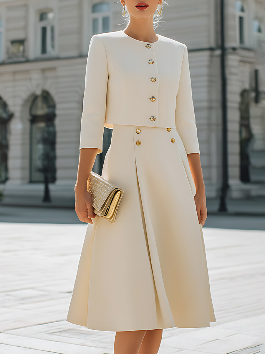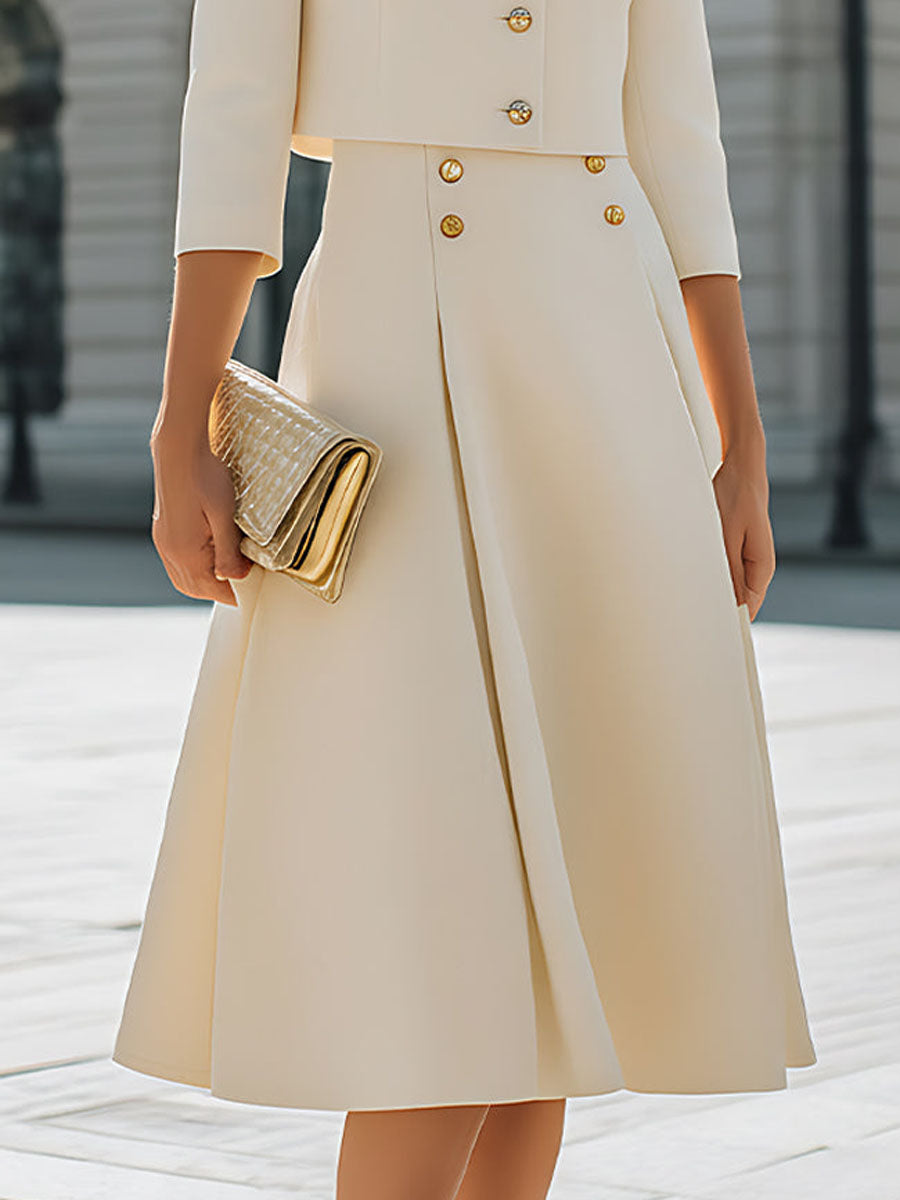 A-Line High Waisted Buttoned Pleated Solid Color Skirts Bottoms