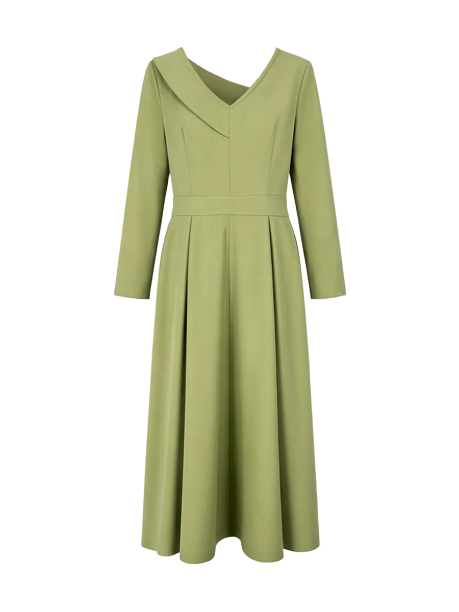 A-Line High Waisted Pleated Pockets Solid Color V-Neck Maxi Dresses