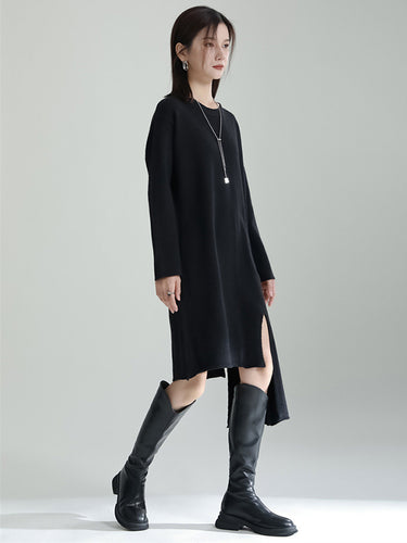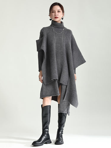 Mangas longas casuais de cor de alto-pescoço solto de pescoço e vestidos de suéter Duas peças