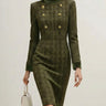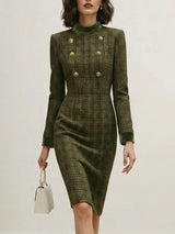 High Waisted Long Sleeves Buttoned Solid Color Split-Joint Zipper Mock Neck Midi Dresses