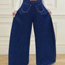 High Waisted Loose Elasticity Pockets Solid Color Zipper Jean Pants Bottoms