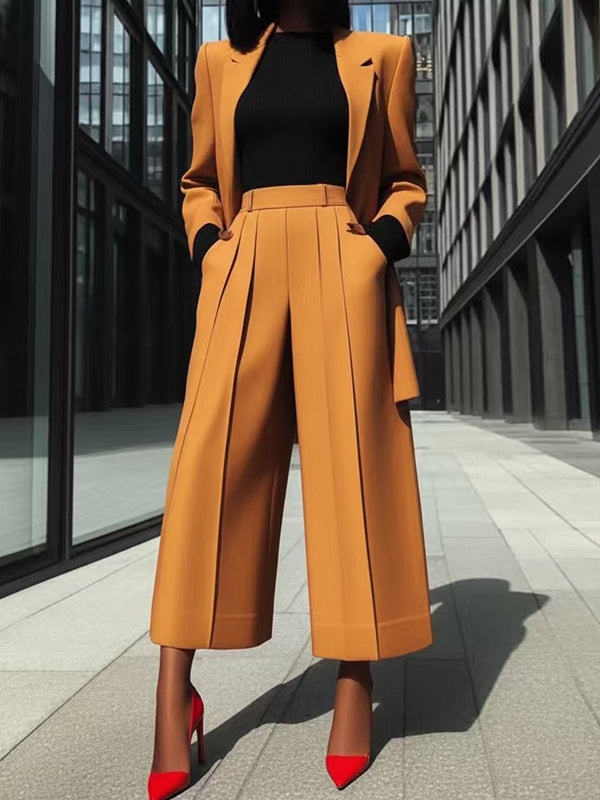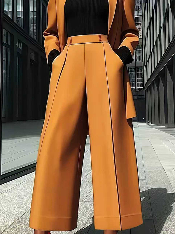 High Waisted Wide Leg Solid Color Split-Joint Pants Trousers