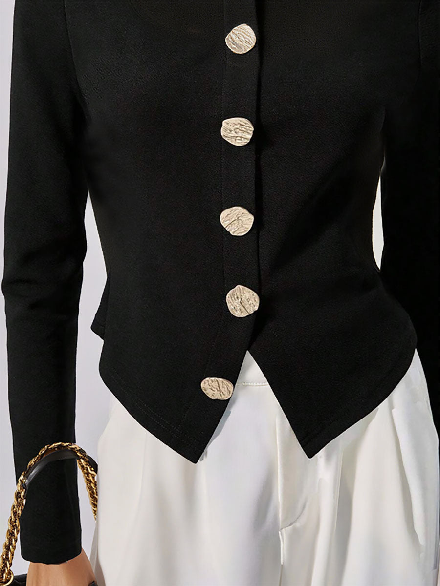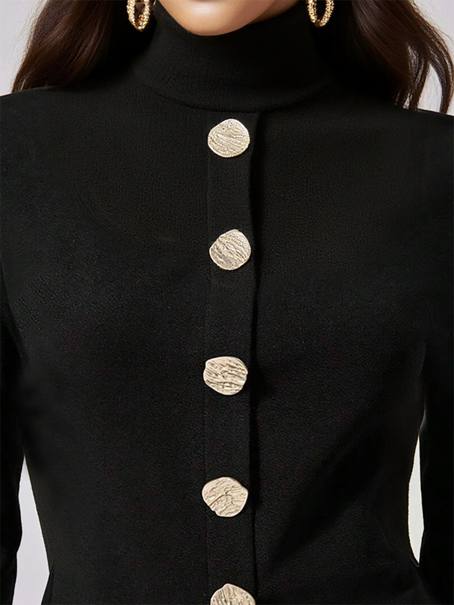 Long Sleeves Buttoned Solid Color High Neck Pullovers Sweater Tops