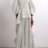 Mangas compridas soltas plissadas plissadas de cor sólida de junta dividida Vestidos maxi de pescoço redondo em camadas