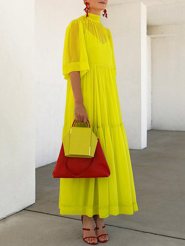Vestido interno de junta dividida em cores sólidas soltas + vestido externo de mock mock mock mach