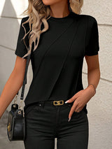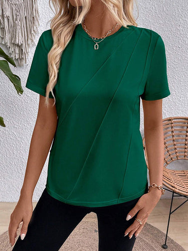 Mangas curtas soltas de cor sólidas de pescoço redondo camisetas