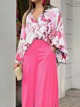 Blusa de cor de contraste original Pontas largas de calças 2 peças Conjunto de peças