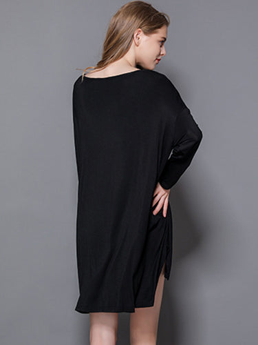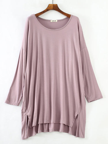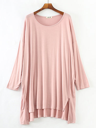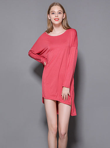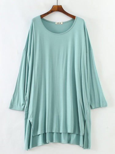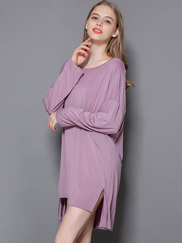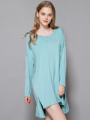 Vestido de pijama de manga longa e alta modal de cor sólida