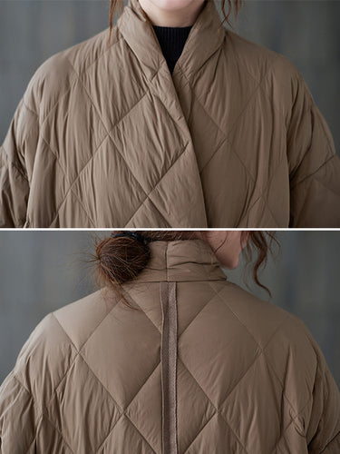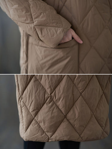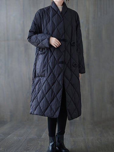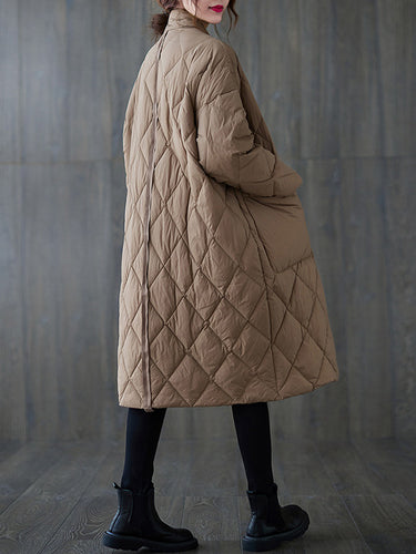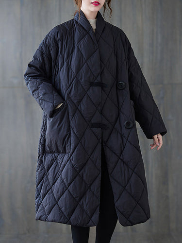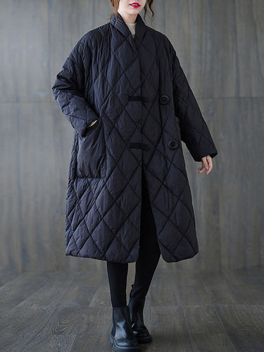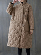 Vintage Artistic Retro Color Solid Butrowed Stand Collar Mangas compridas Casaco acolchoado