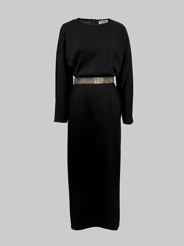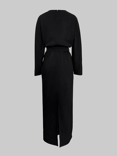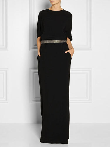 Half Sleeves Loose Rhine Stones Split-Joint Round-Neck Maxi Dresses