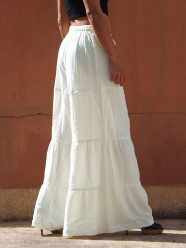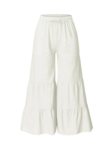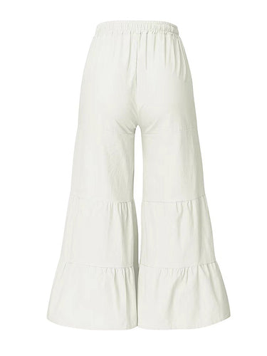 Yüksek Belli Gevşek Çizme Elastikiyeti Pileli Düz Renk Bölünmüş Pantolon Pantolon