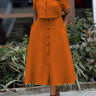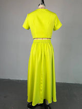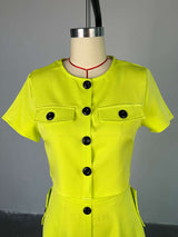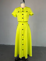 Düğmeli cepler bölünmüş eklem yuvarlak boyun tişört üst + a-line yüksek bel etekler alt iki parça set