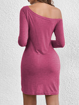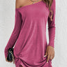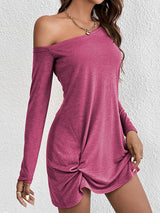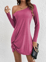 Sıradan gevşek uzun kollu düz renkli tek omuzlu mini elbiseler