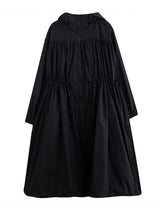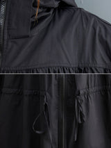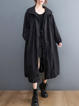 Sıradan gevşek düz renkli fermuar çizim uzun kollu kapüşonlu trençkot