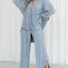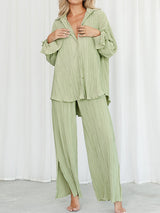 Alevlendi kollu uzun kollu düğmeli çizim pileli düz renk bölünmüş yakalı yaka gömlekleri üst + pantolonlar alt pijama setleri
