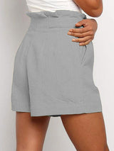 Yüksek Belli Gevşek Pileli Split-Eklem Şortları Dipler