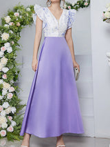 Yüksek Beled Petal Kollu Basılı Split-Eklem Derin V Yağ Maksi Elbiseler