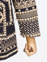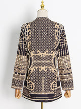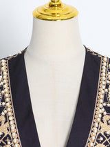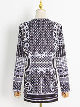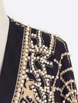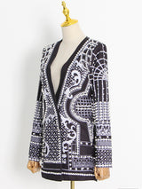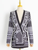 Uzun kollu gevşek boncuklar baskılı v yaka blazer dış giyim