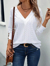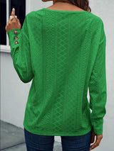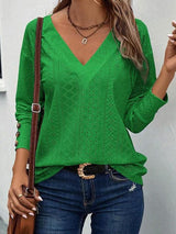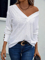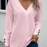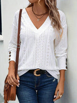 Uzun kollu gevşek düğmeli düz renkli v yaka tişörtler üstleri