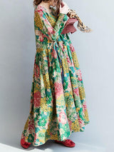 Ulusal tarzı çiçek baskılı uzun elbise