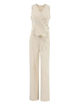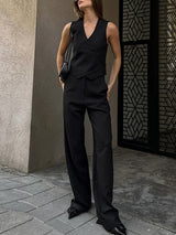 Düz renkli kolsuz asimetrik bölünmüş eklem v yaka yelek üstleri + düz bacak pantolonları iki adet set