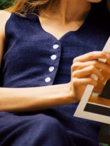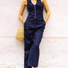 Düz renkli kolsuz düğmeli derin v yaka yelek üst + pileli düz bacak pantolon alt iki parça set