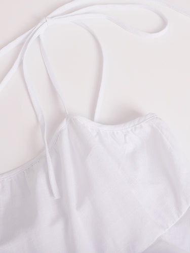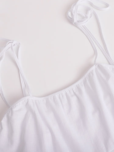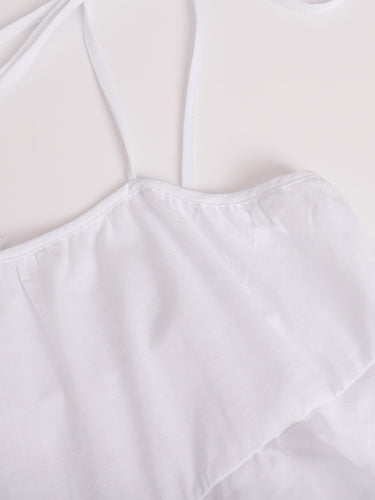A-Line Yüksek Belli Sırtsız Katmanlı Pileli Piled Düz Renkli Spagetti Yığın Mini Elbiseler