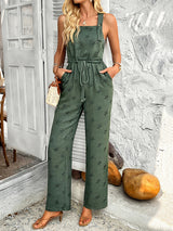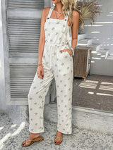 Kolsuz Düğmeli Drawstring Cepleri Basılı Spagetti boyun tulumları
