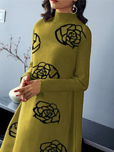 A-line uzun kollu çiçek baskısı alay eti midi elbiseler