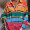 Uzun kollu gevşek düğmeli kontrastlı renkli yaka bluz gömlekler üstleri