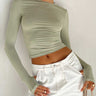 Uzun kollu sıska içi boş düz renk yuvarlak boyunlu tişörtler üstleri