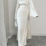 A-Line Flared Sleeves Solid Color Tied Zipper Round-Neck Maxi Dresses