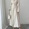A-Line High Waisted Buttoned Pleated Solid Color Split-Joint Notched Collar Maxi Dresses Shirt Dress