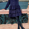 Flared Sleeves Long Sleeves Buttoned Elasticity Layered Solid Color V-Neck Mini Dresses