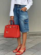 Gevşek geniş bacak düğmeli cepler jean pantolon dipler şortlar dipler