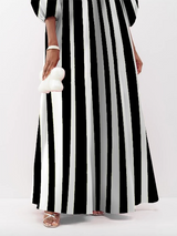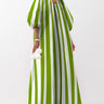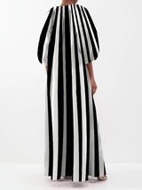 Puflu kollar üç çeyrek kollu çizgili v yaka maksi elbiseler