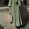 A-Line Long Sleeves Pleated Pockets Solid Color Zipper V-Neck Midi Dresses