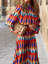 A-line uzun kollu kontrast renk elastikiyeti pileli stand yakalı mi elbiseler