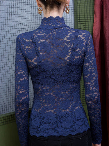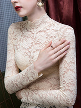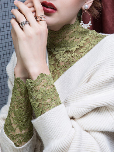 Uzun kollu artı Boyut Gezazı See-Through Split-Eklem Yüksek Boyun Tişörtleri