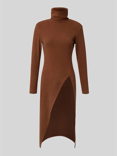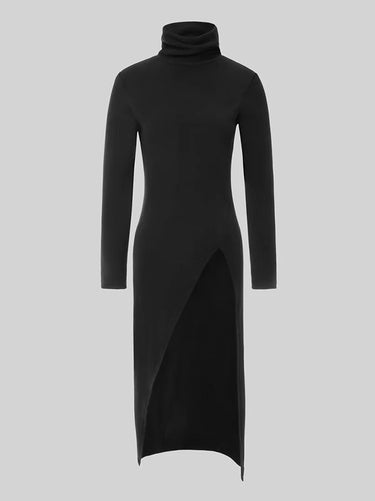 Basit sıska bölünmüş tarafı düz renkli yüksek boyunlu tişörtler