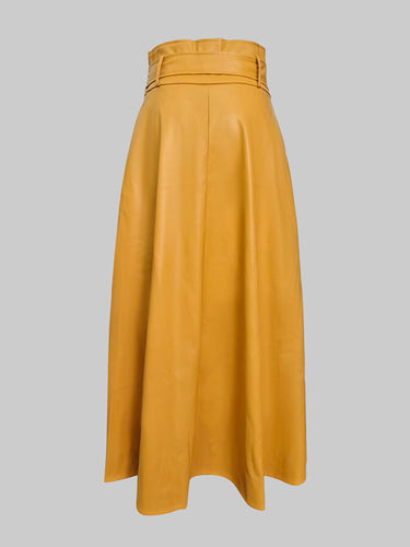 A-Line High Waisted Belted Pockets Solid Color Zipper Skirts Bottoms