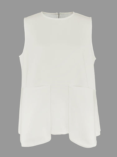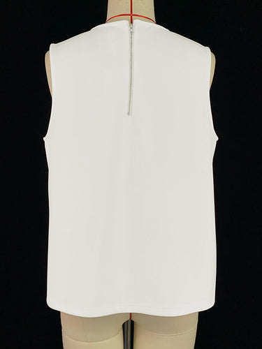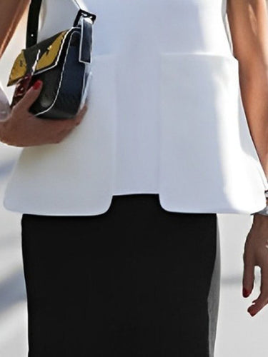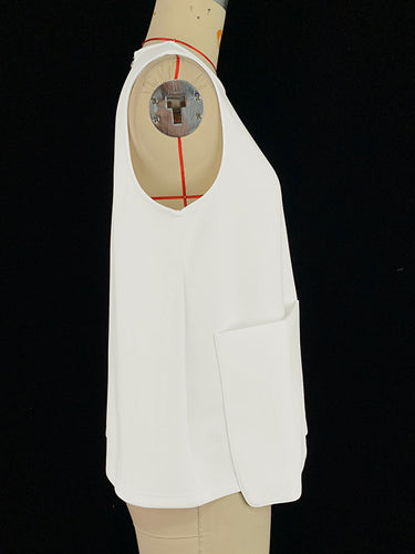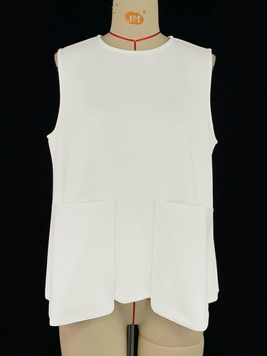 A-line gevşek düz renkli bölünmüş eklem yuvarlak boyunlu yelek üstü