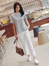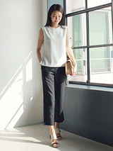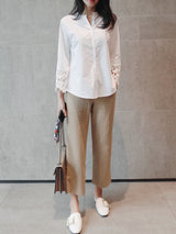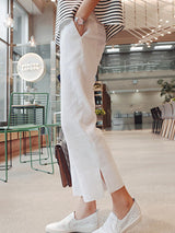 Keten şık artı boyutu gevşek rahat bölünmüş tarafı dokuzuncu pantolon