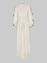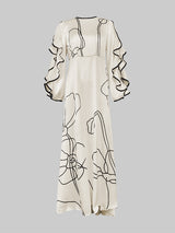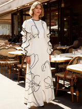 Gevşek kontrast renk falbala çiçek baskısı içi boş fermuarlı maksi elbiseler