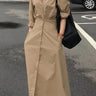 Gevşek puflu kollu düz renkli bölünmüş eklem yaka maksi elbiseler gömlek elbise