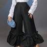 Gevşek geniş bacak düğmeli falbala yüksek belli düz renk alevli pantolon pantolon