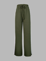 Gevşek geniş bacak kontrastlı renk çizme esnekliği bölünmüş eklem pantolon pantolon