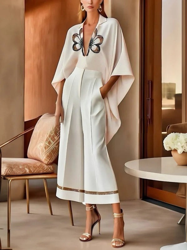 Batwing Sleeves High-Low Flower Print V-Neck Blouses&Shirts Tops