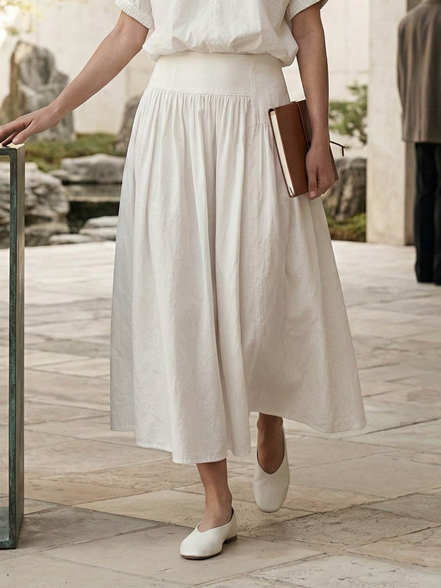 High Waisted Loose Asymmetric Pleated Solid Color Split-Joint Skirts Bottoms