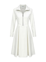 Long Sleeves Skinny Soft Zipper Lapel Midi Dresses